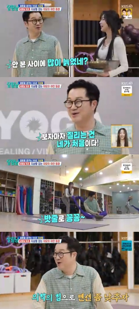 지상렬은 미모의 요가강사가 등장하자 수빈과 있을 때와는 달리 자세를 바로잡았다.
