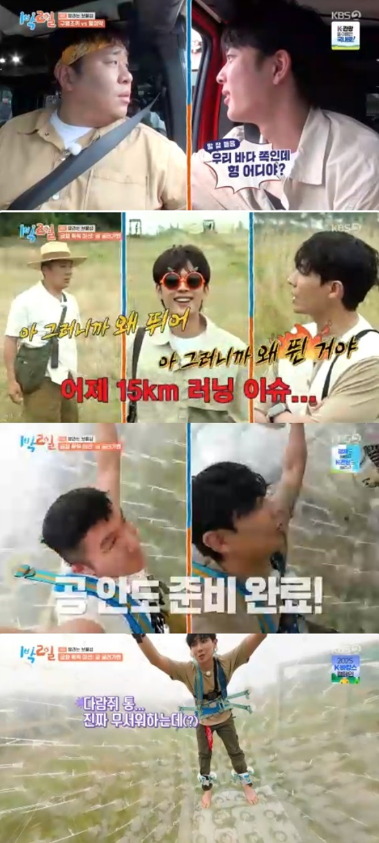 이준은 유선호를 향해 "'1박' 촬영 전날 15km를 뛰는 사람이 어디 있어"라고 타박을 했다.