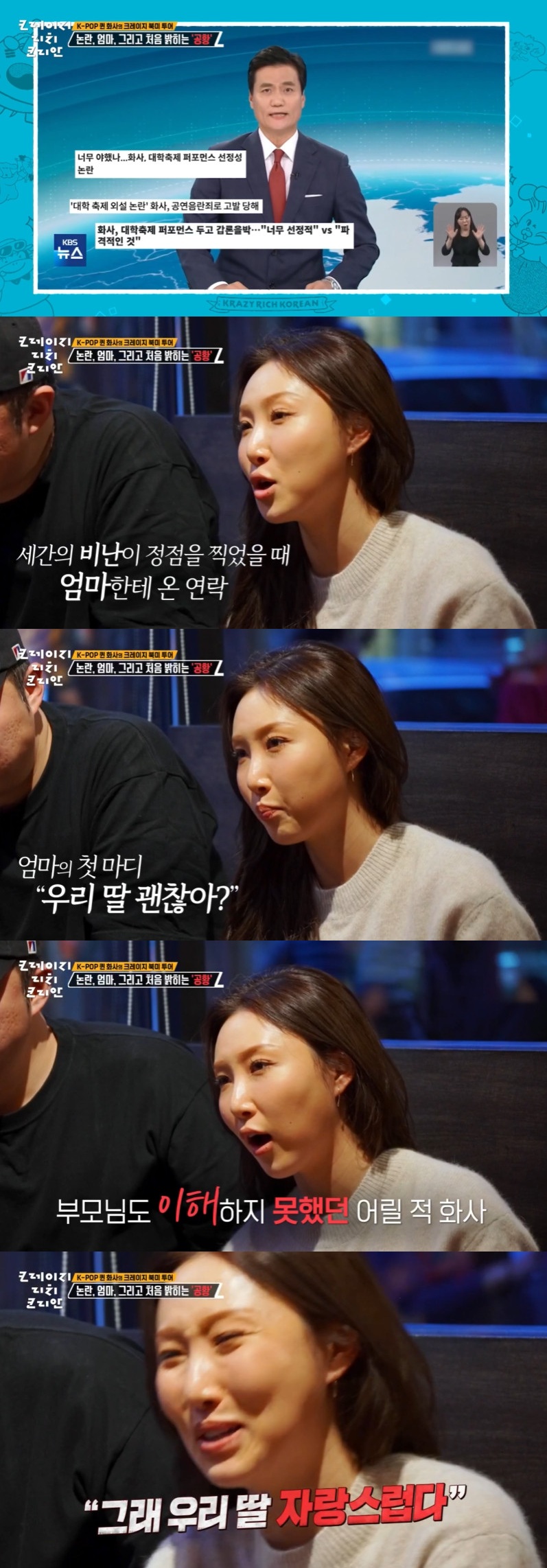 14일 KBS 2TV '크레이지 리치 코리안'(이하 '크리코')에는 외설 논란으로 무대 퍼포먼스로 인해 경찰 조사까지 받았던 화사의 당시 심경이 전해졌다.