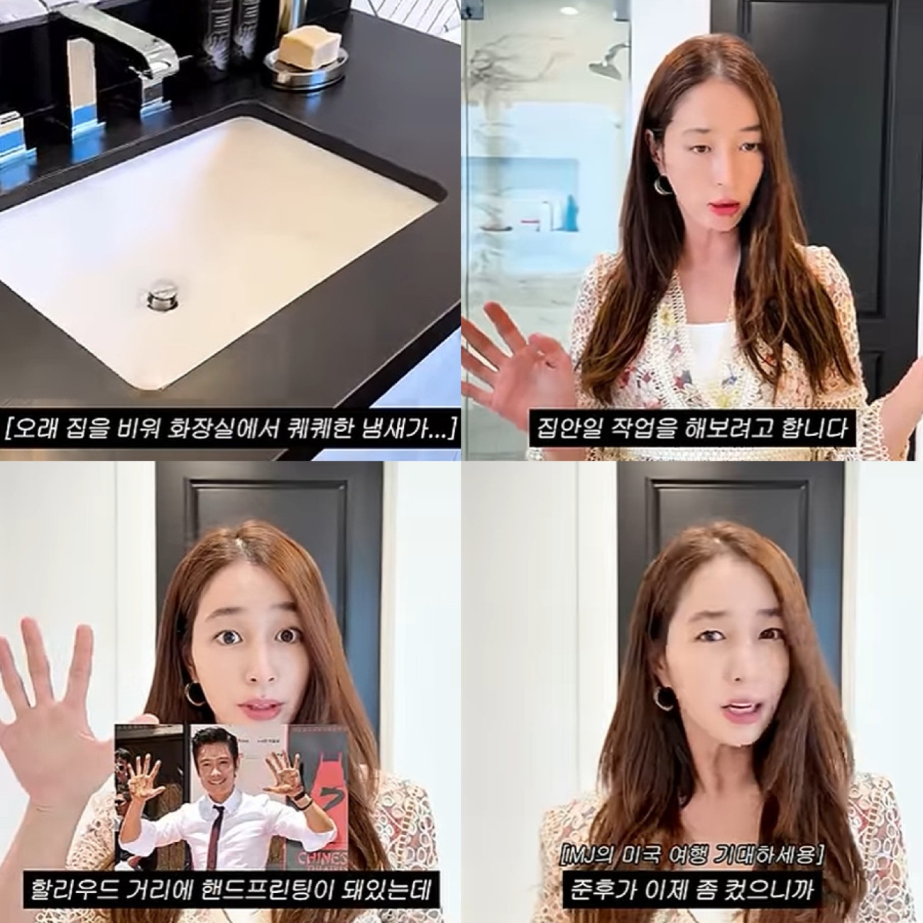 화제가 된 미국 집을 유튜브를 통해 공개한 이민정은 "집 정리하고 환기를 시키려고 한다"며 친구를 만나러 가기 전 화장실, 신발장 등에 탈취제를 놓으며 집안일을 하는 영상을 공개했다.