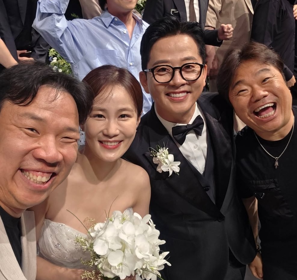 특히 오지헌과 정종철은 김지민과 김준호 부부 사이에서 활짝 웃어보이며 김준호 부부의 비주얼을 더욱 빛내 눈길을 끈다. 아름다운 미모를 자랑하는 신부 김지민과 미남 이목구비를 제대로 뽐낸 신랑 김준호의 비주얼 케미스트리가 감탄을 부른다.