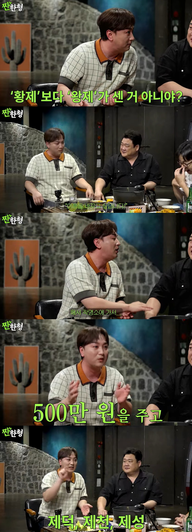 이날 정호철이 "원래 유년 시절 때 본명이 황제성이 아니었죠?"라고 묻자 황제성은 고개를 끄덕이며 "황제였다"고 답했다.