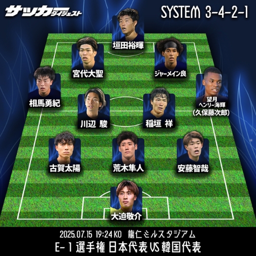 일본 매체 '사커 다이제스트'는 15일 이날 오후 7시 24분 용인미르스타디움에서 열리는 대한민국과 일본의 2025 동아시아축구연맹(EAFF) E-1 챔피언십(동아시안컵) 남자부 3차전에 나설 일본 축구 대표팀의 예상 라인업을 소개했다. 여기서 나가토모의 이름이 없다.