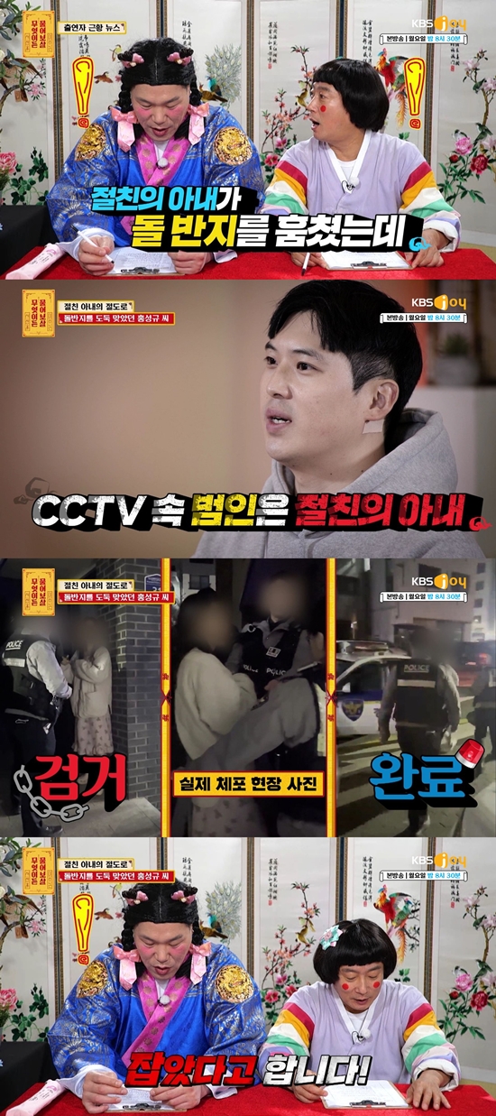 이날 방송에서는 20년 친구의 아내가 돌 반지 등을 절도하고 경찰에 신고, 조사 중 불륜 사실까지 확인되며 스튜디오를 충격에 빠뜨렸던 사건에 대한 근황 뉴스가 전해졌다.