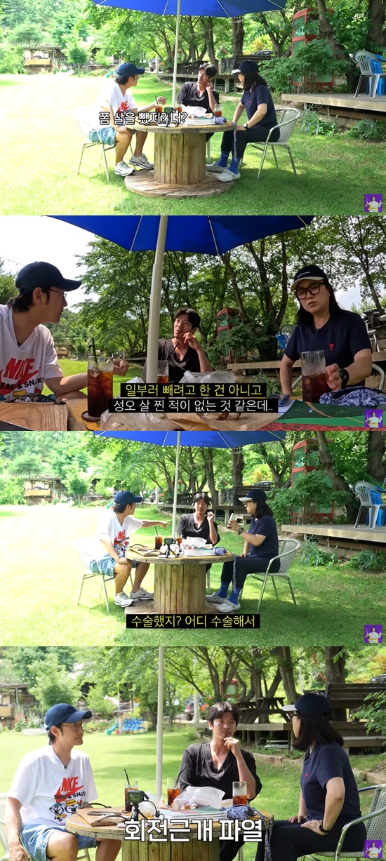 그는 "어릴 때부터 운동을 많이 해서 회전근이 닳은 거다. 그 때 운동을 못 해서 살이 좀 쪘다"고 이야기했다.
