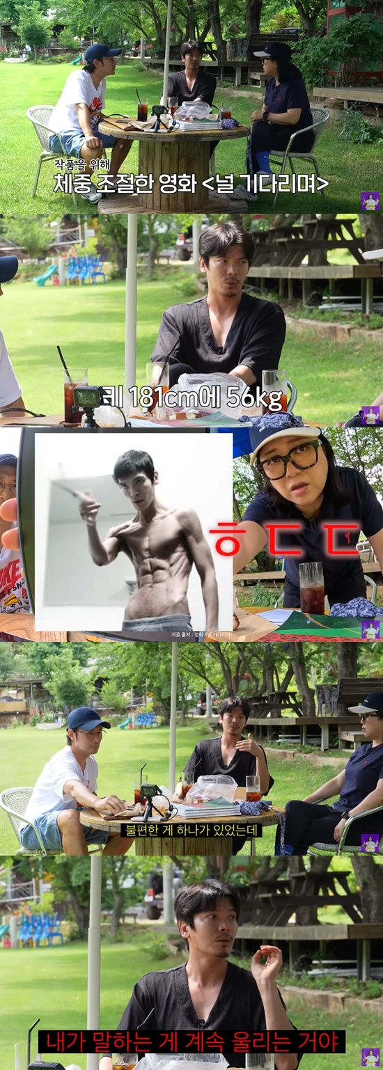 반면 김성오는 영화 '널 기다리며' 당시 181cm의 키에 56kg까지 감량했던 일을 털어놨다. 그는 "연기가 안 되고 기억력이 떨어지거나 하진 않았는데, 불편한 게 하나가 있었다. 내가 말하는 게 계속 울리더라"고 말했다.