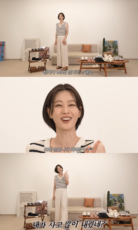 이후 다급하게 "여러분"이라고 외친 이현이는 "저 이 샌들 3년 간 정말 잘 신었다. 정가가 149만 원이라고 한다. 그런데 현재 59만원이라고 한다. 제가 사고 (가격이) 많이 내렸다. 일단 뭐 지난 시즌이다. 그리고 슈즈는 시즌을 안 타지 않나"라고 위로했다.