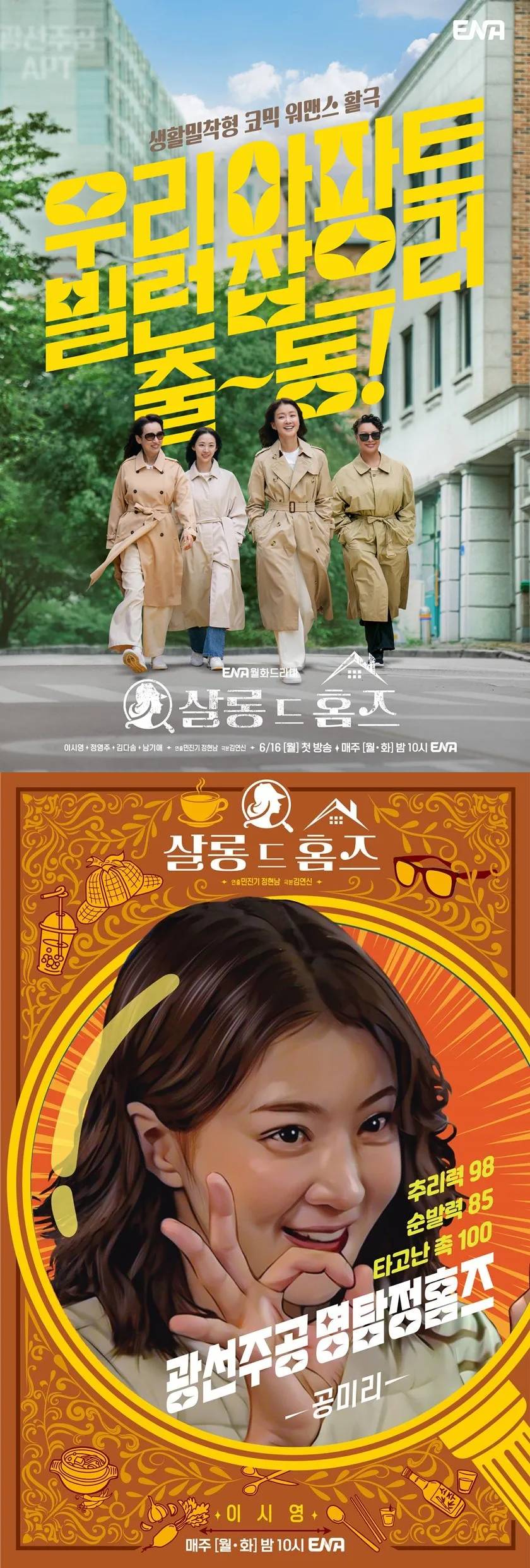 지난달 16일 첫 방송된 ENA 월화드라마 '살롱 드 홈즈'. 광선주공아파트 줌벤져스 4인방 이시영, 정영주, 김다솜, 남기애가 아파트 빌런을 응징하는 내용의 코믹 워맨스 활극이다.