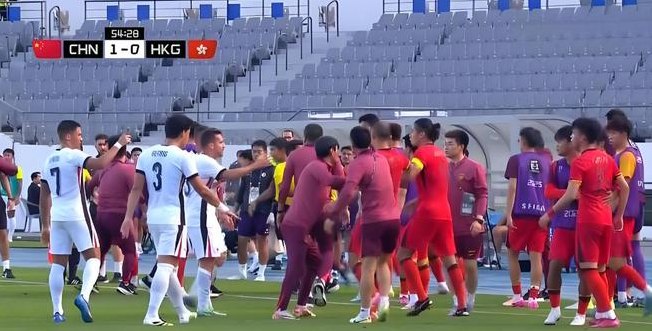 왕위동이 반칙을 당하자 중국 선수들은 크게 흥분했고, 홍콩 선수들도 맞대응하면서 벤치 클리어링이 발생했다.