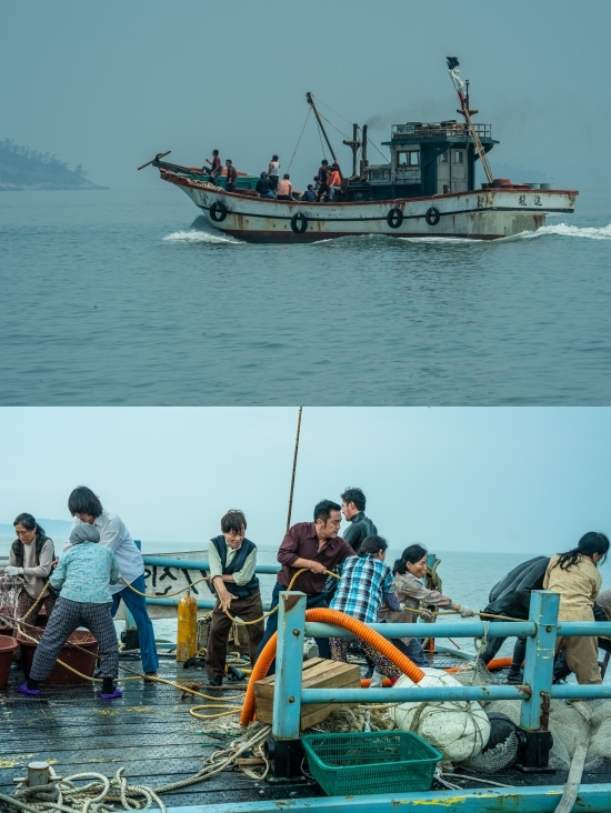 마지막으로 신안 앞바다를 중심으로 주요 사건이 전개되는 만큼, 광활한 바다를 향해 출항하는 ‘용진호’와 보물 발굴 작업에 열중인 캐릭터들의 모습은 '파인: 촌뜨기들'의 스케일을 고스란히 보여준다. 강윤성 감독은 “서해 바다는 조류의 차가 심해서 배를 고정시키는 게 쉽지가 않다. 그래서 2~3개의 닻을 만들어서 배를 꼭 고정을 시키고 찍어야만 하는 상황이 쉽지 않았던 촬영이었던 것 같다”라며 작품의 배경과 일치하는 실제 서해 바다에서의 어려웠던 촬영에 대해 설명해 제작진의 노고가 담겨있는 작품으로 기대감을 높였다. 이렇듯 스케일 스틸에서 확인할 수 있듯이 '파인: 촌뜨기들'은 올여름 무더위를 잊게 할 시원한 즐거움과 짜릿한 몰입감을 안겨줄 예정이다.
