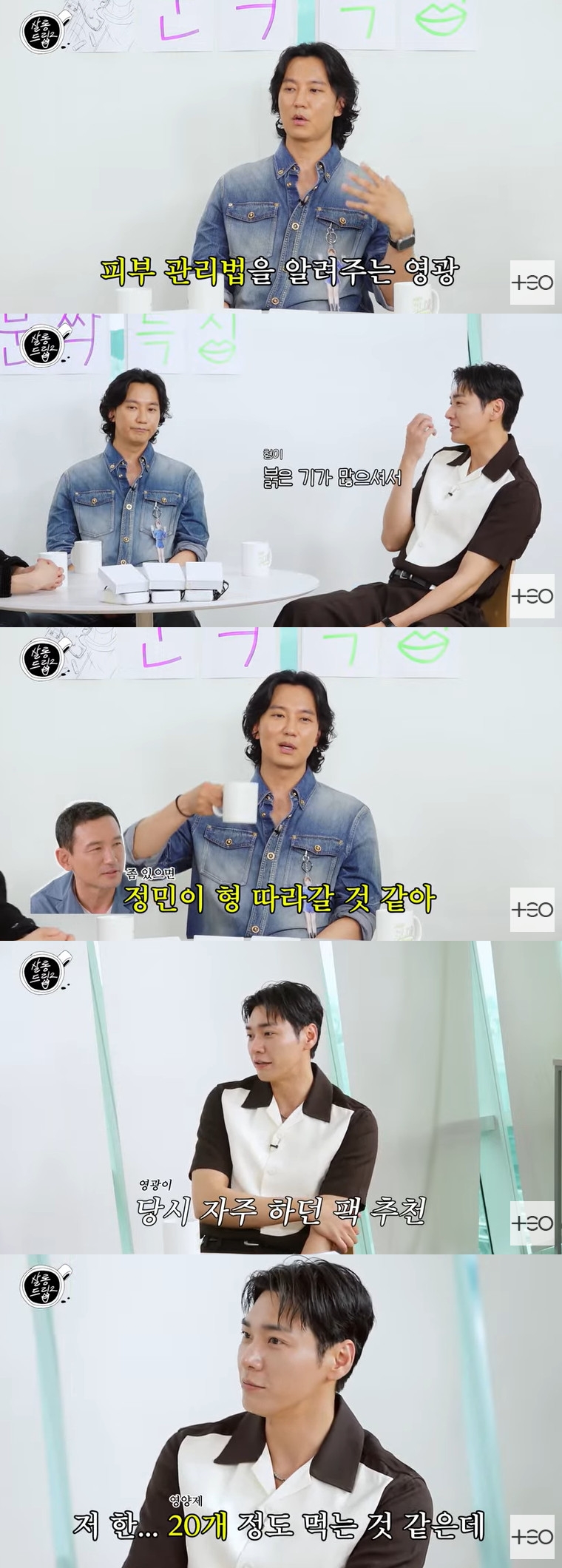 김영광은 당시에 하던 팩을 추천해 줬다고. 이어 "저는 약간 건강에 관심이 많다. 영양제를 엄청 챙겨 먹기도 하고"라며 "20개 정도"를 먹는다고 해 눈길을 끌었다.