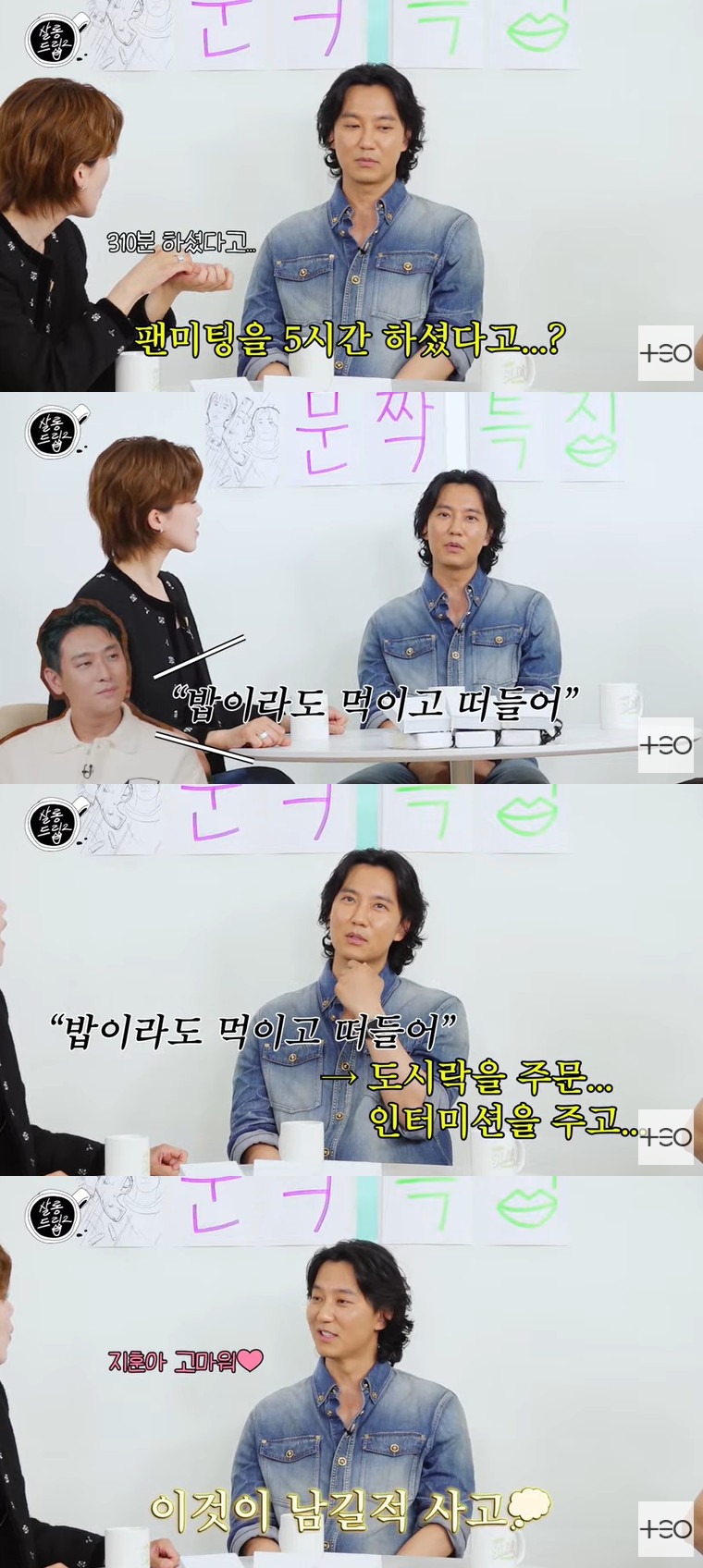 김남길은 "제가 그렇게 했다고 하니까 주지훈이 '그렇게 많은 사람들 불러놓고 떠드려면 밥이라도 먹이고 떠들라고' 하더라. 그 얘기 듣고 다음번에 도시락을 해서 인터미션을 아예 주고 길게 해야겠다는 생각이 들어서 '지훈아 고마워' 이랬다"며 절친 주지훈의 반응을 전했다.