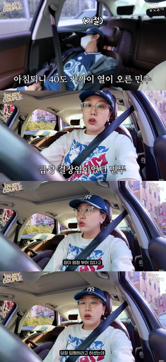 또 "민수가 식중독 같은 건데, 급성 결장염이었다. 엄청 안 좋고, 장이 엄청 부어 있다고 당장 입원하라고 하셨다"라고 상황을 설명했다.