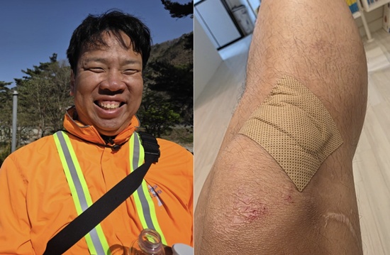 그는 또 "그나마 다행이다. 무릎이 성할 날이 없구나. 비 때문에 미끄러져 핸들을 놓쳤다"며 당시 아찔했던 순간을 회상했다.