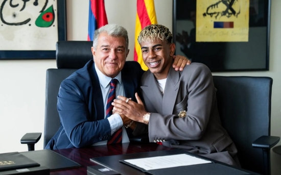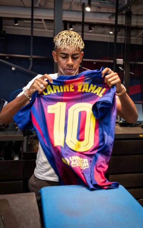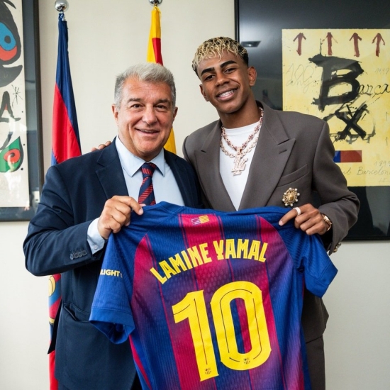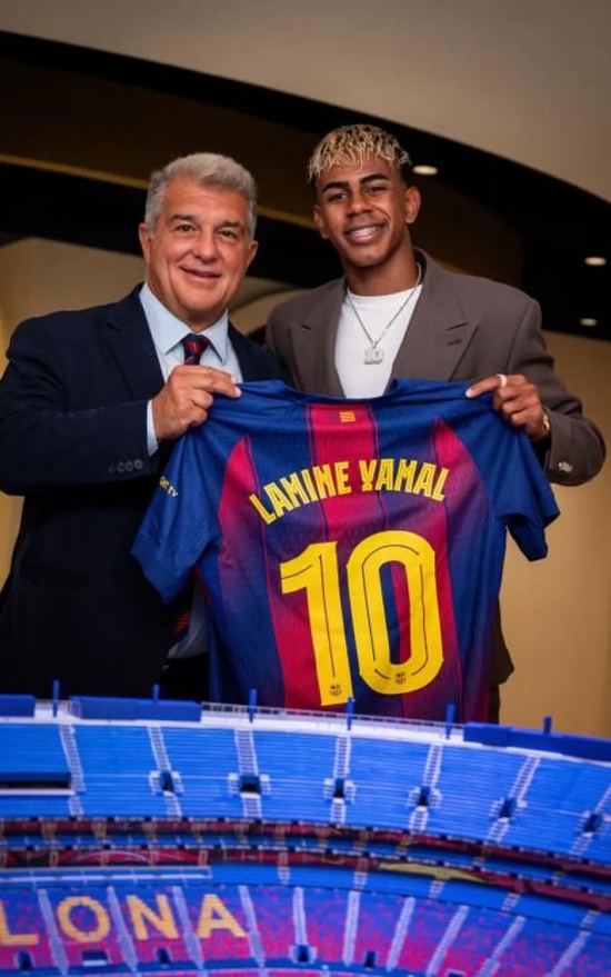 구단은 야말의 6년 재계약과 함께 "직접 계약서에 사인한 뒤, 라포르타는 야말에게 새로운 등번호 10번의 유니폼을 보여줬고 야말은 곧바로 입이 귀에 걸리듯 크게 웃었다"라고 알렸다.