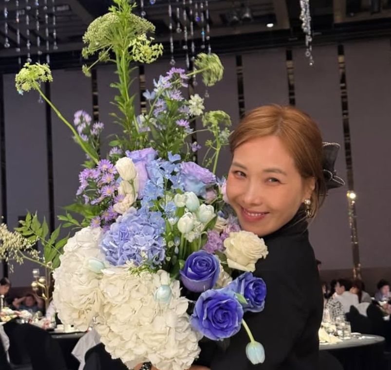 공개된 사진 속에는 김준호와 김지민 결혼식에 참여한 개그맨들의 모습이 담겨있다. 특히 신봉선은 블랙 드레스를 입고 우아한 스타일링을 선보였으며, 생화 부케와 조화를 이루는 밝고 생기 넘치는 표정으로 결혼식장의 분위기를 환하게 밝혔다.