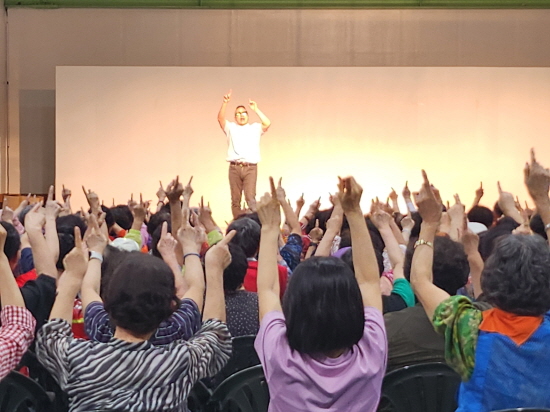 (엑스포츠뉴스 김현정 기자) 거리의시인 노현태와 트롯황소 김경민이 지난 17일, 경기도 수원시 버드내노인복지관에서 어르신들을 위한 ‘건강박수’ 재능기부 공연을 펼치며 따뜻한 감동을 전했다.