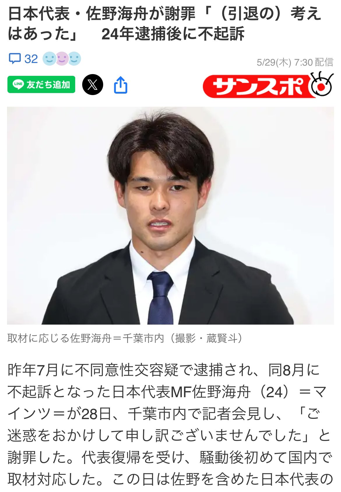 모리야스 감독도 사노에 대해 "이전부터 본 적이 있지만, 직접 연락을 취해 뉘우치고 있다는 것을 느꼈다"라며 "현재 독일에서 뛰면서 진지하게 경기에 임하고 있고 사회에 공헌하겠다는 강한 의지를 가지고 뛰고 있기 때문에 대표팀으로 돌아가 사회에 공헌하고 일본 대표팀의 일원으로 뛰는 것이 좋다고 판단했다"고 밝혔다.