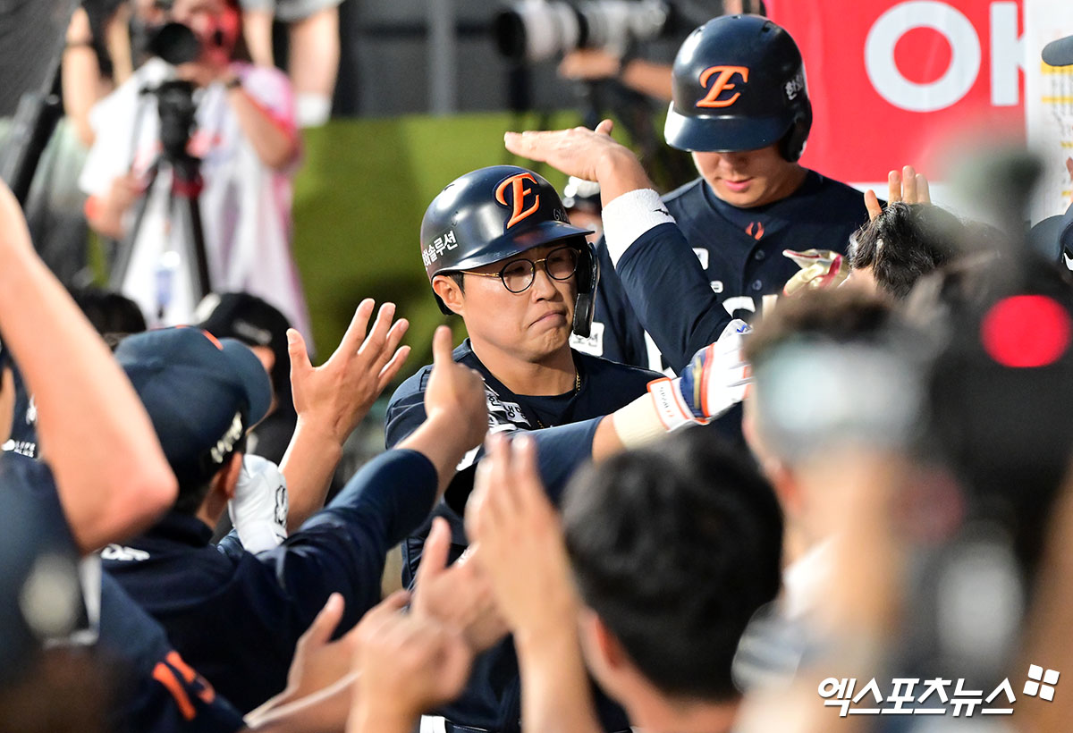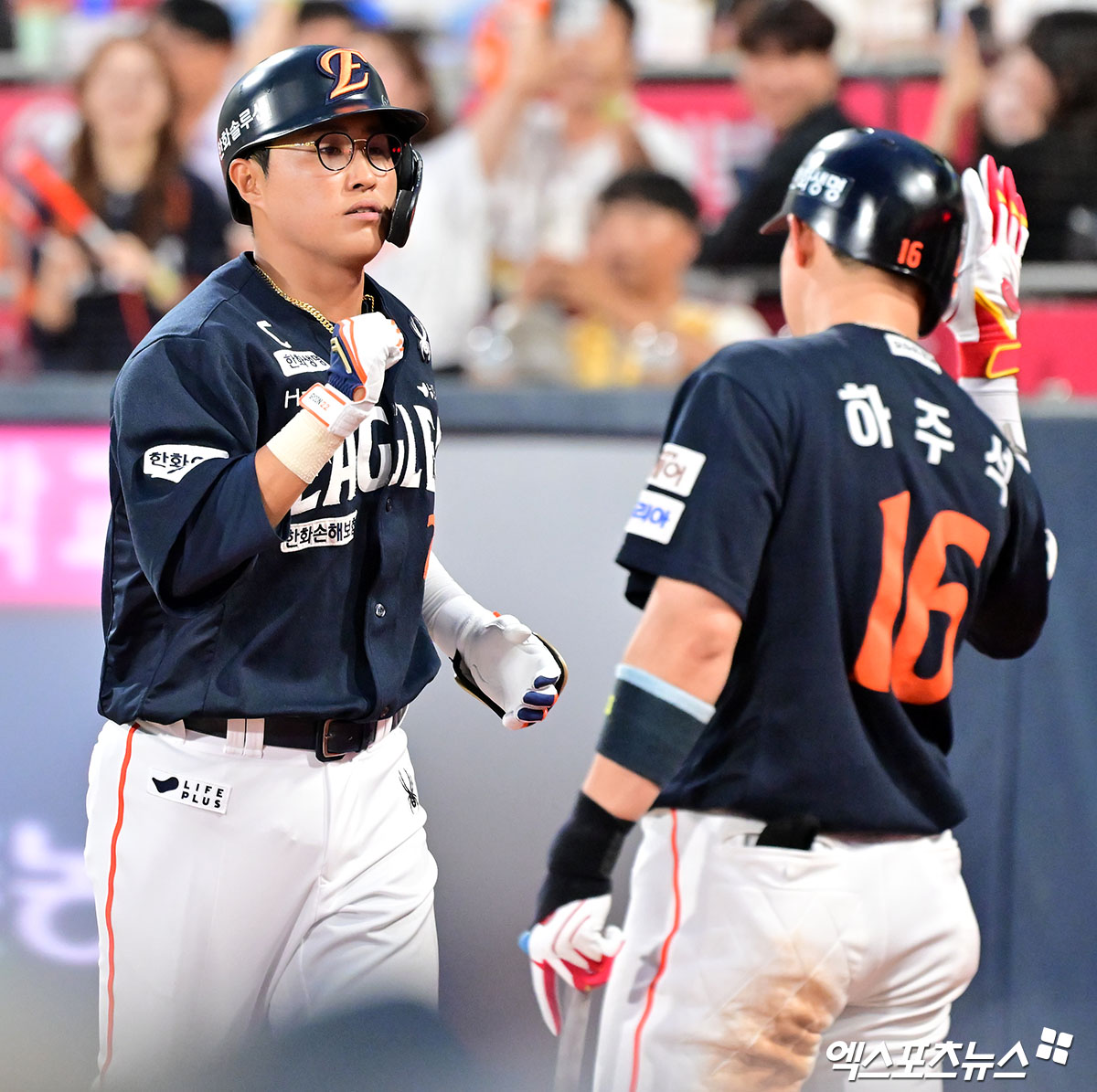 한화가 2-0으로 앞선 3회초, 노시환이 2루타를 치고 나간 2사 2루 상황에서는 볼카운트 2볼에서 3구 체인지업을 받아쳐 좌전 적시타를 만들어냈고, 2루에 있던 노시환을 불러들였다.