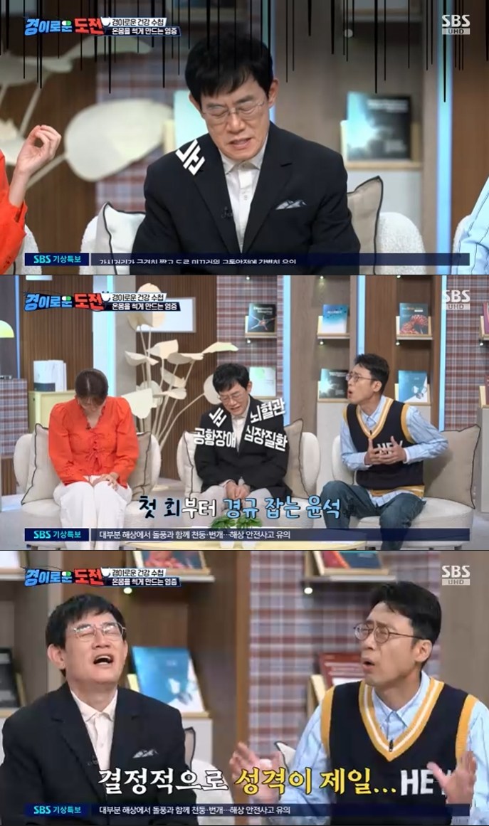 늘어가는 건강 걱정에 이경규는 깊은 한숨을 쉬었다. 그러자 김윤석은 "형님이 공황장애도 있고 심장도 안 좋으시다"고 걱정하더니, "결정적으로 성격이 안 좋다"고 디스해 폭소를 유발하기도.