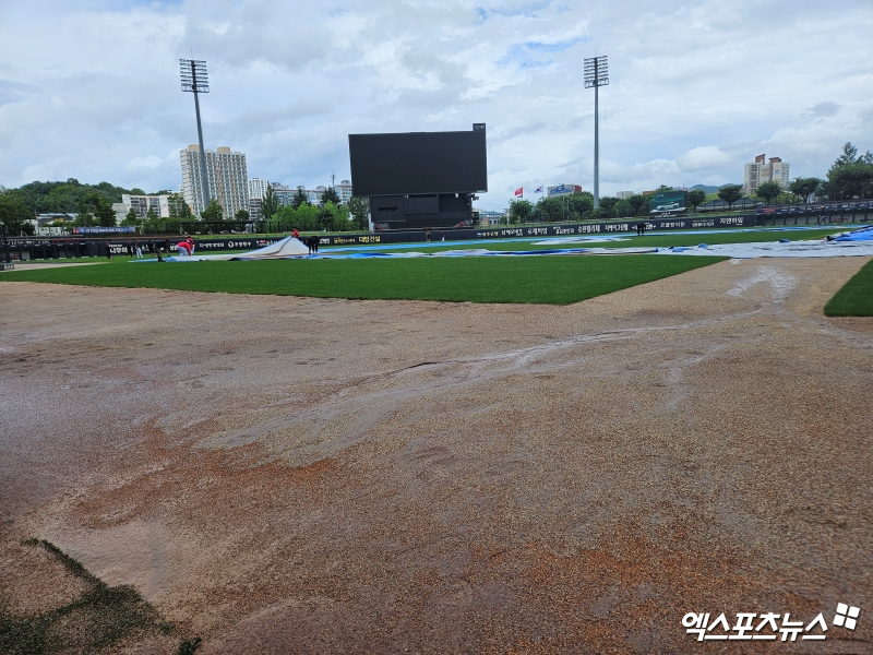 일단 오후 2시 현재 비는 그친 상태다. 비가 더 이상 내리지 않고 그라운드 정비가 이뤄진다면 경기가 진행될 수 있다.