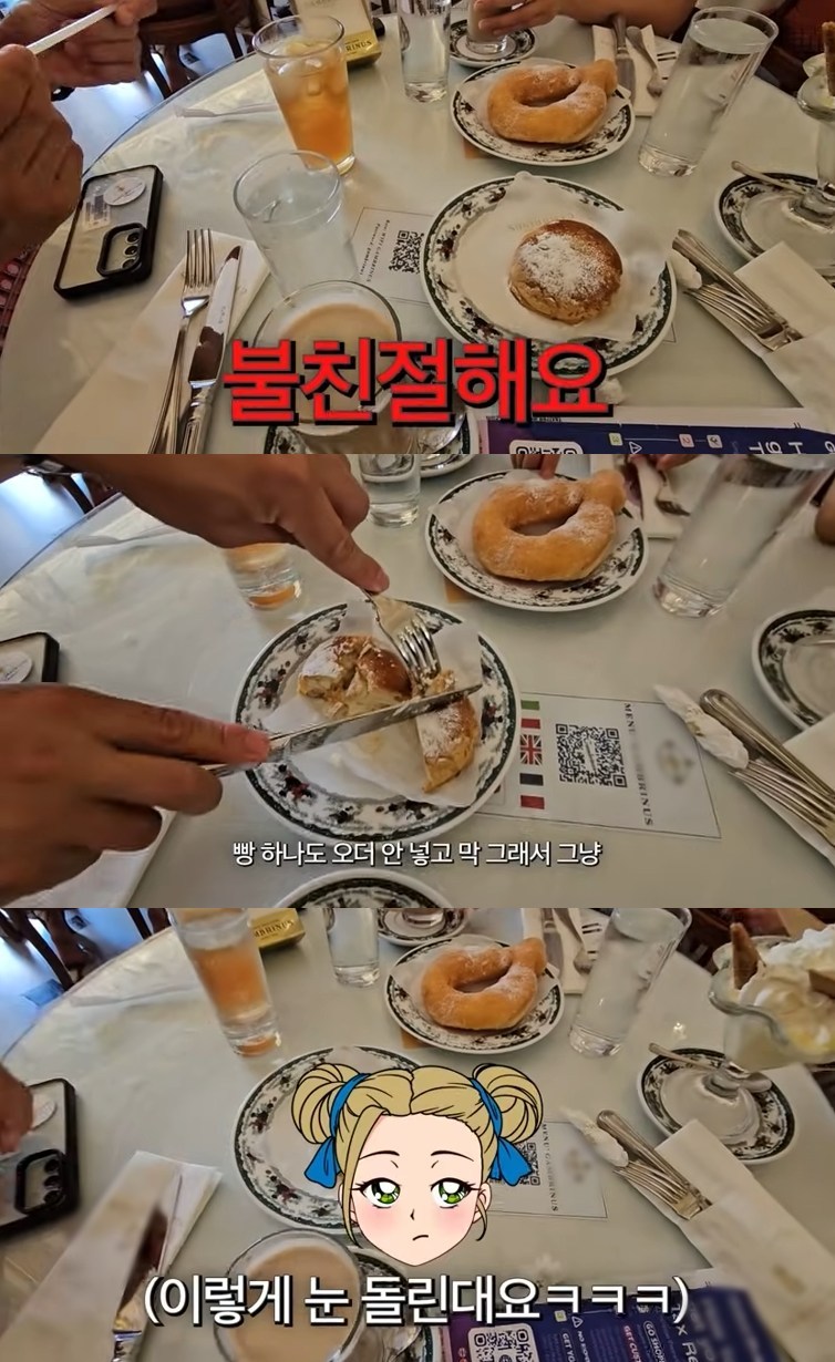 점심식사 후에는 한 카페를 찾았다. 사진까지 있는 친절한 메뉴판에 감탄했지만, 이내 이들은 불친절한 서비스를 토로했다. 성의가 없고 접시를 던지는가 하면, 빵 하나는 주문을 넣지 않았다는 것. 이에 딸 리호 양은 "나갈 때 내가 눈 돌릴까"라고 응수해 웃음을 자아냈다.