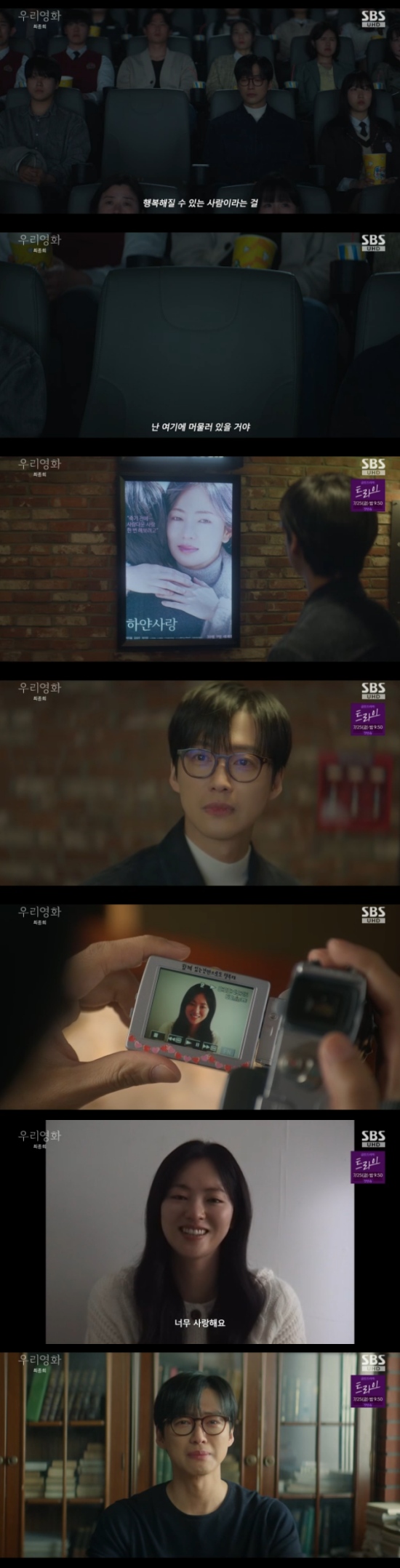 19일 방송된 SBS 금토드라마 '우리영화' 최종회에서는 영화 '하얀 사랑'의 개봉을 함께 하지 못하고 결국 세상을 떠난 이다음(전여빈 분)과 그를 그리워하는 이제하(남궁민)의 모습이 그려졌다.