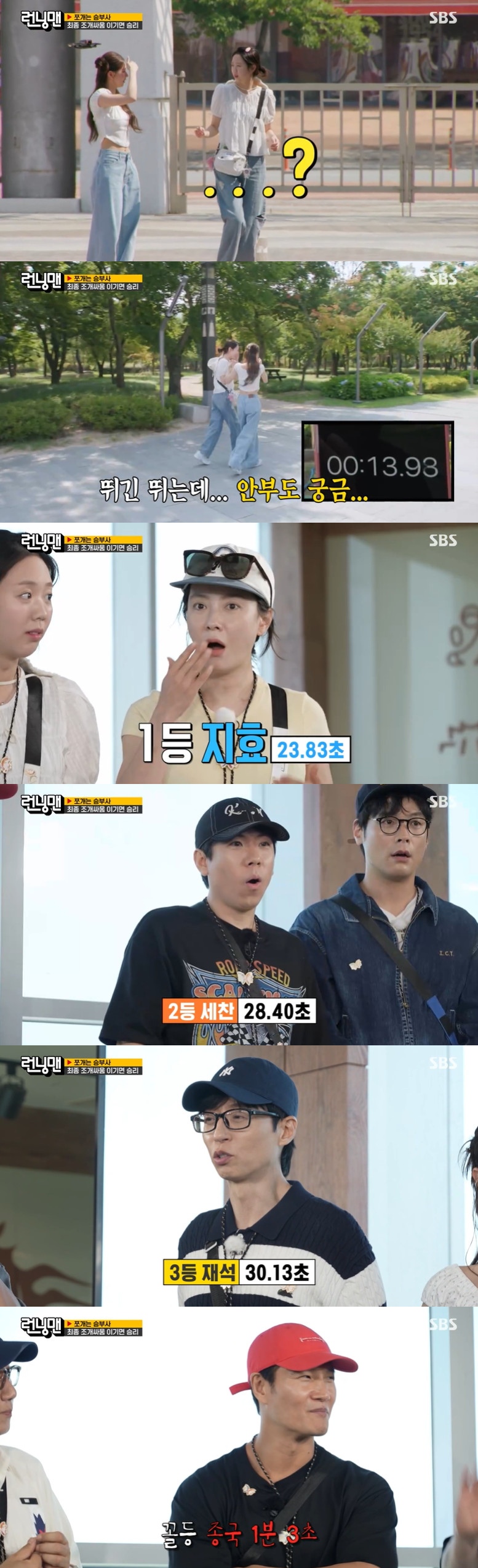 1등은 23.83초의 송지효로 압도적인 일위를 차지했다.