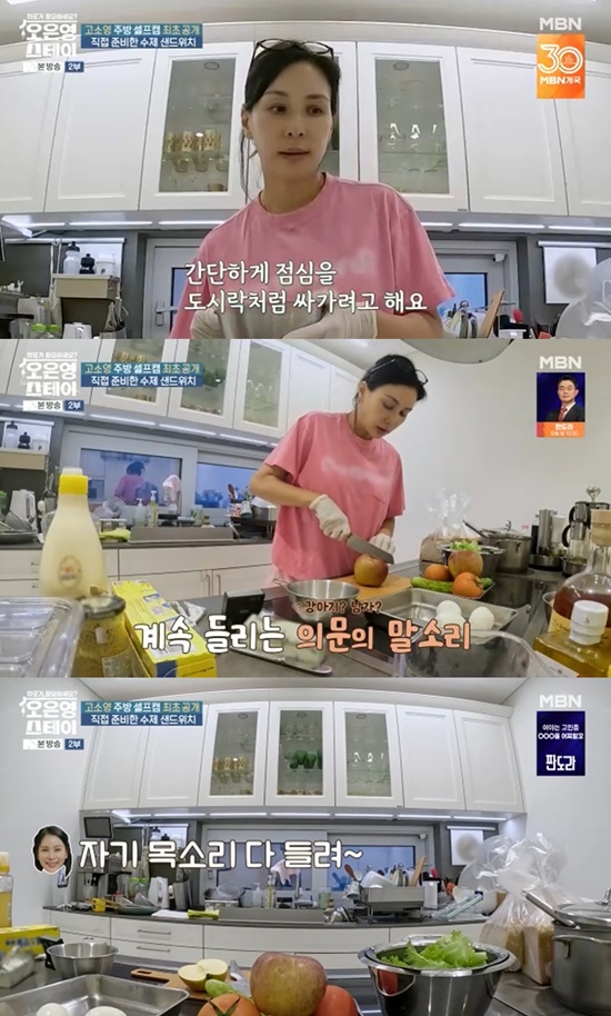 고소영은 점심시간, 참가자들에게 "집에서 만들어왔다"며 샌드위치를 건넸다. 이어 고소영의 주방 셀프캠을 통해 그가 녹화 당일 새벽부터 일어나 샌드위치를 만드는 과정이 공개됐다.