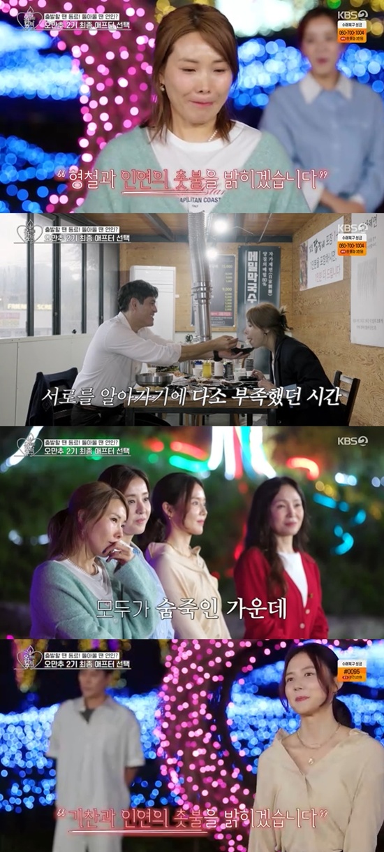 21일 방송된 KBS 2TV '오래된 만남 추구'(이하 '오만추')에서는 2기 멤버들의 최종 선택 모습이 그려졌다.