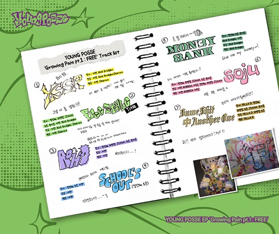 이에 따르면, 'Growing Pain pt.1 : FREE'에는 타이틀곡 'FREESTYLE'을 포함해 'YSSR', 'ADHD', 'School's Out', 'MON3Y 8ANK', 'soju', 'Same Shit 中 Another One' 등 총 7곡이 수록된다.