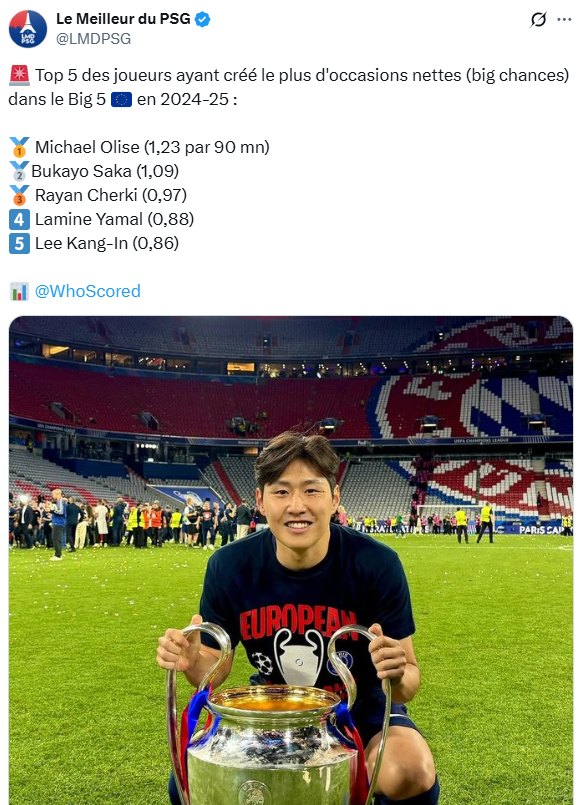PSG 소식통 '파리 팬스'도 "이강인은 놀라운 통계로 모두를 놀라게 했다"라며 이강인의 2024-2025시즌 기록을 주목했다.