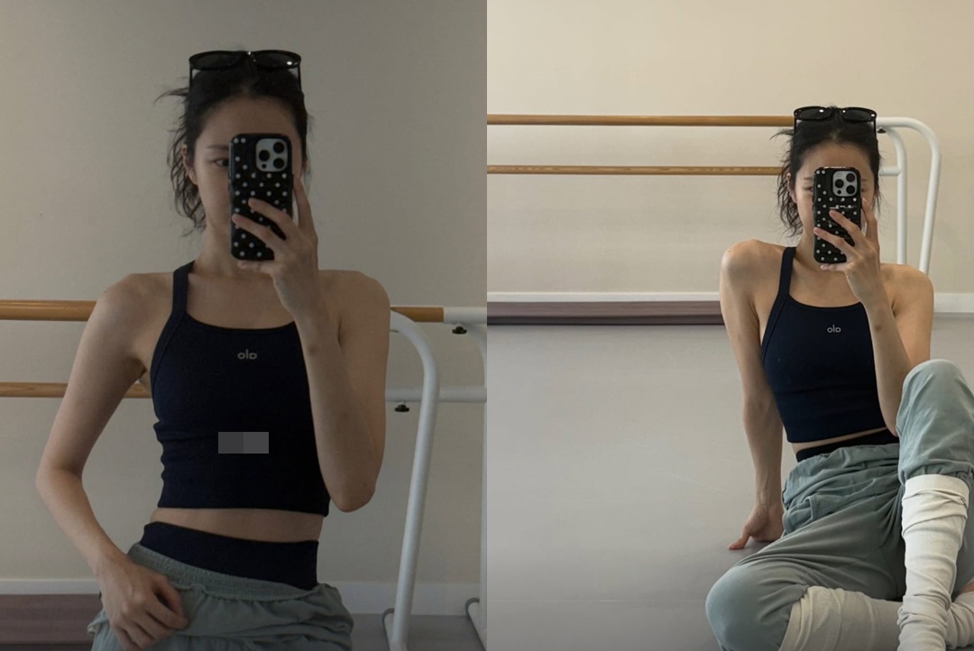 22일 손나은은 개인 계정을 통해 두 장의 사진을 게재했다. 공개된 사진 속 손나은은 운동복을 입고 거울 셀카를 촬영하는 모습. 짙은 네이비 톤의 브라톱과 트레이닝 팬츠, 레그 워머를 매치한 채 거울 앞에서 포즈를 취하고 있다.