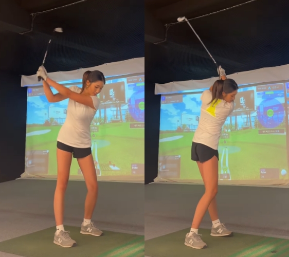 공개된 영상에는 스크린 골프장에서 골프를 연습하고 있는 전미라의 둘째 딸의 모습이 담겨 있다. 175cm인 엄마의 큰 키를 닮아 쭉 뻗은 기럭지가 눈길을 끈다.