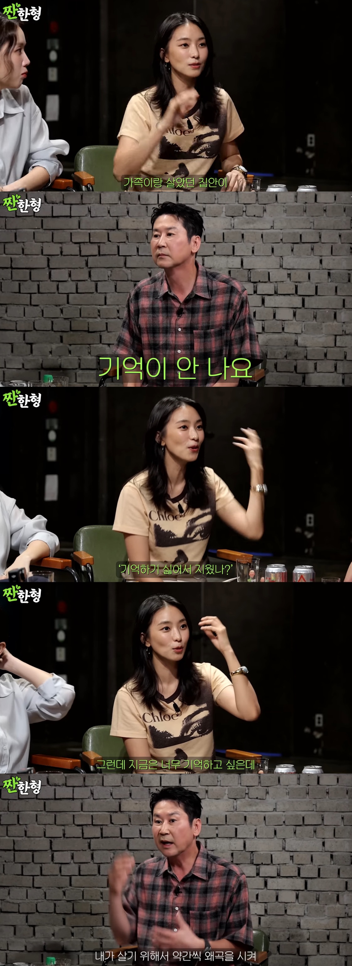 "그 당시에 창피하다고 생각 안 하고 그렇게 지냈다"는 보라는 어린 시절을 회상하는 신동엽의 이야기를 듣다가 "저 기억력이 좋다. 그런데 어렸을 때, 초등학교 중학교부터 심지어 대학생 때까지 가족과 살았던 집 안이 기억이 안 난다. 희한하다. '왜 난 기억이 안 나지? 나도 모르게 기억하기 싫어서 지웠나?' 싶다"고 털어놨다.
