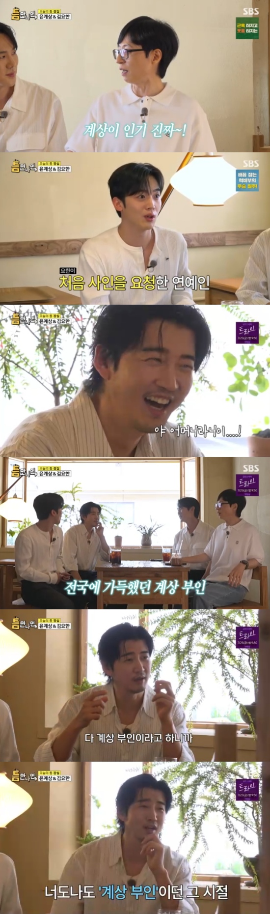 이날 방송에서 유재석은 윤계상의 등장에 god의 인기를 떠올리면서 "전국에 '계상 부인'이 엄청 많다"고 했고, 윤계상은 "거짓말 같다. 다 '계상 부인'이라고 하니까"라면서 부끄러워했다.