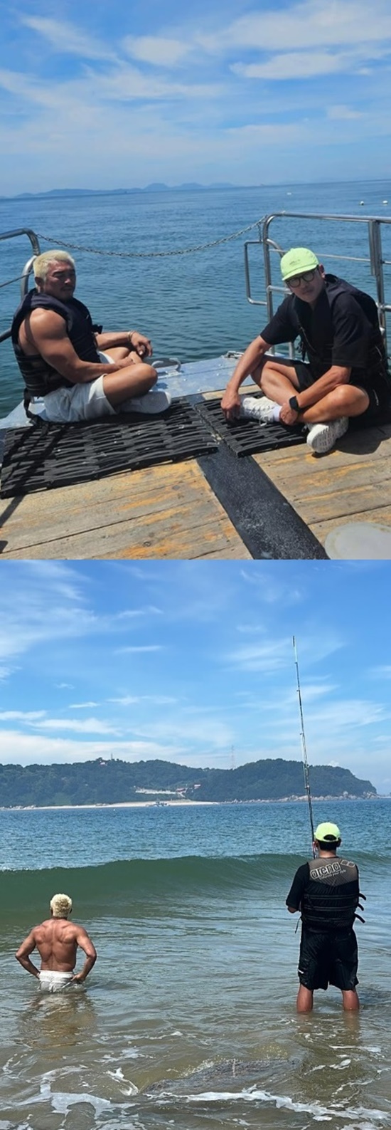 공개된 사진에는 하정우와 추성훈이 바다낚시를 떠난 모습이 담겨 있다.