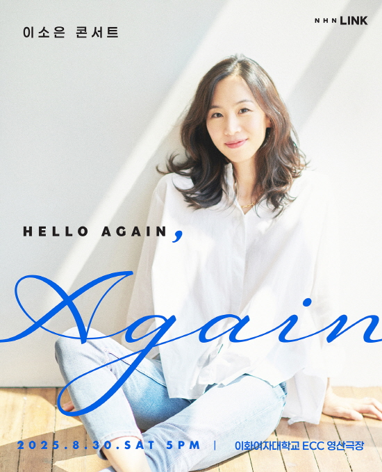 NHN링크는 2025 이소은 콘서트 ‘Hello Again, Again.(헬로 어게인, 어게인.)’을 제작하고, 자사의 티켓 예매 플랫폼 티켓링크에서 23일 티켓 오픈한다고 밝혔다.