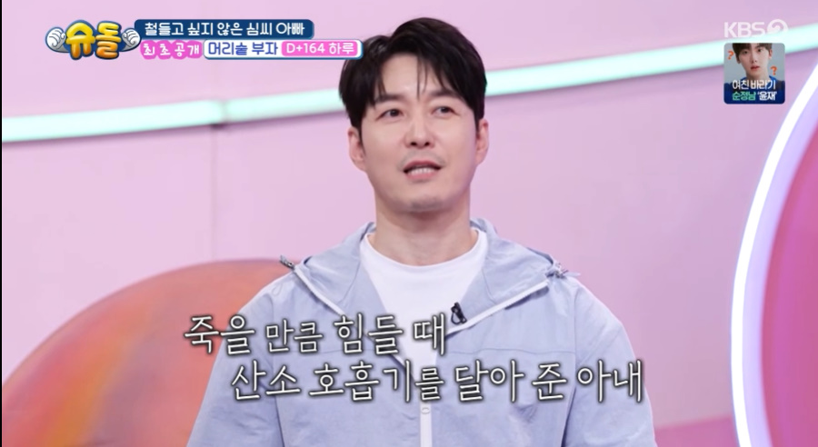 특히 심형탁은 "제가 상처가 많다 보니까. 그 상처가 많아서 죽고 싶을 만큼 힘들 때 산소호흡기를 달아 준 여자라고 생각한다. 근데 산소 호흡기까지 달아주고 제가 숨 쉬고 살만하니까 저한테 삶의 영양제 하루를 낳아준 것 같다"라며 아내에 대한 고마움을 전했다.