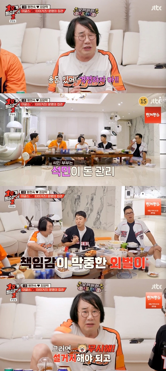 23일 방송된 JTBC 예능 프로그램 '1호가 될 순 없어2'에서는 최양락이 '한화이글스'의 리그 1위를 자축하며 '한화이글스 52번 영구결번' 김태균와 '연예계 대표 한화 팬' 배우 인교진을 집으로 초대했다.