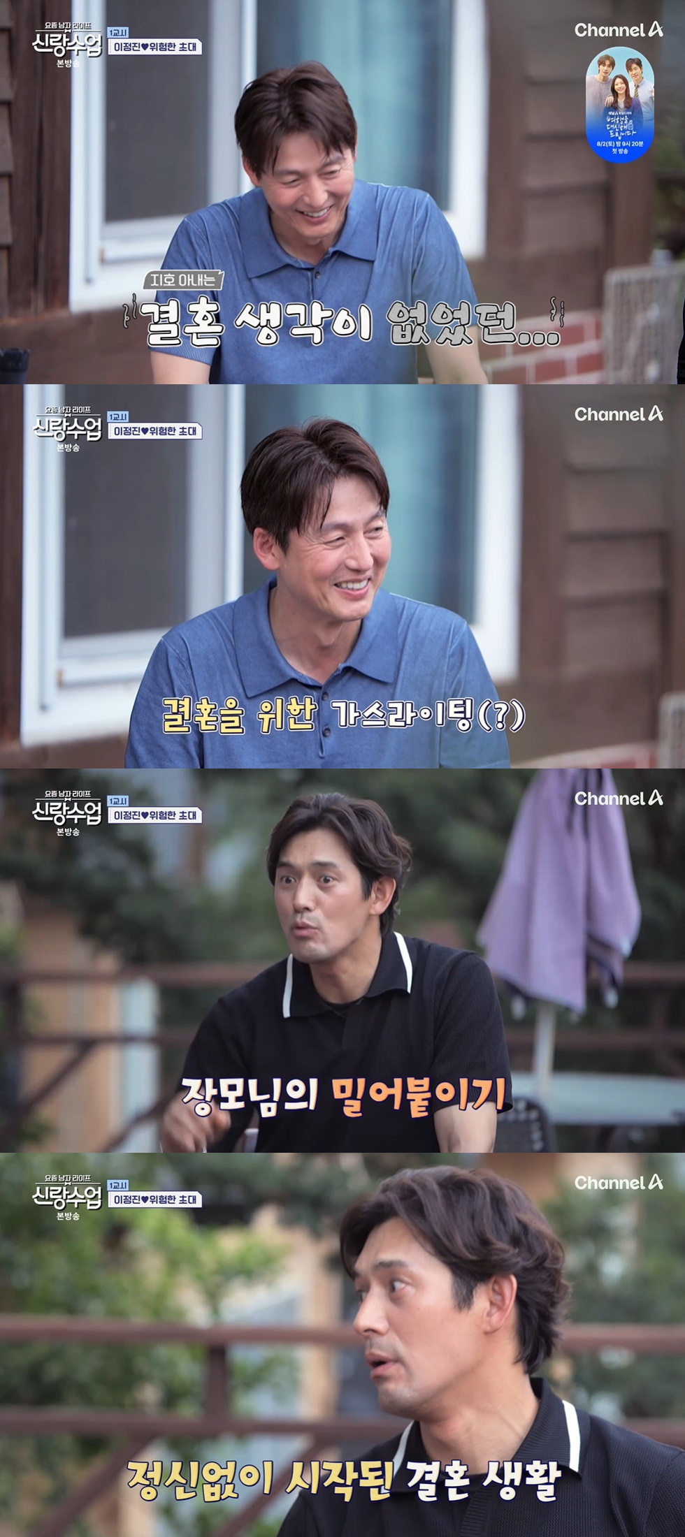 23일 방송된 채널A ‘요즘 남자 라이프-신랑수업(이하 ‘신랑수업’)’ 173회에서는 이정진이 행복한 가정을 꾸린 배우이자 절친한 이종혁과 오지호를 초대해 보양식을 함께 먹으며 결혼에 대해 허심탄회한 이야기를 나누는 모습이 공개됐다.