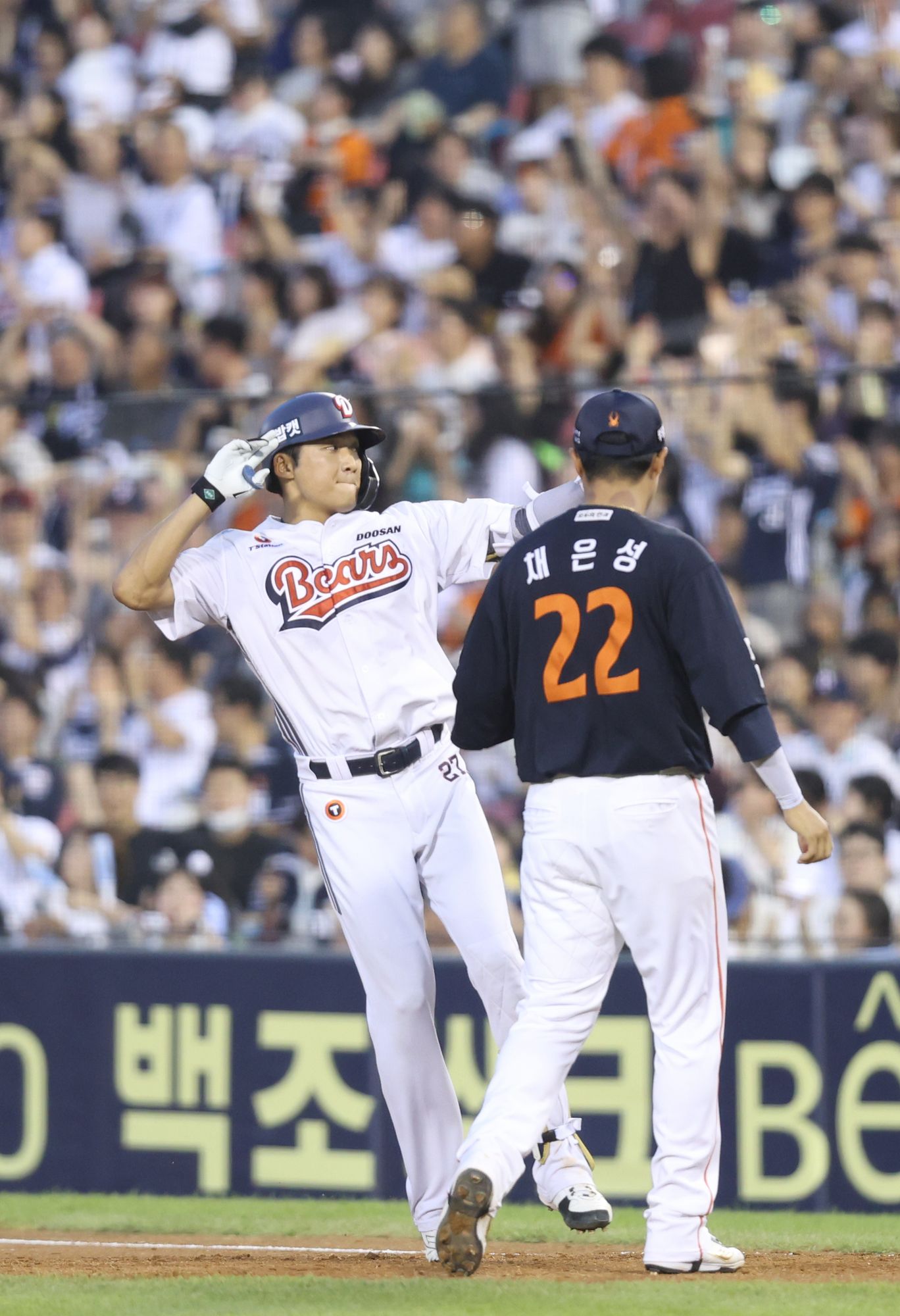 조 대행은 "결승 홈런을 때린 케이브를 비롯해 주장 양의지 등 모든 야수들이 활발한 공격력을 뽐낸 덕분에 승리할 수 있었다"고 힘줘 말했다.