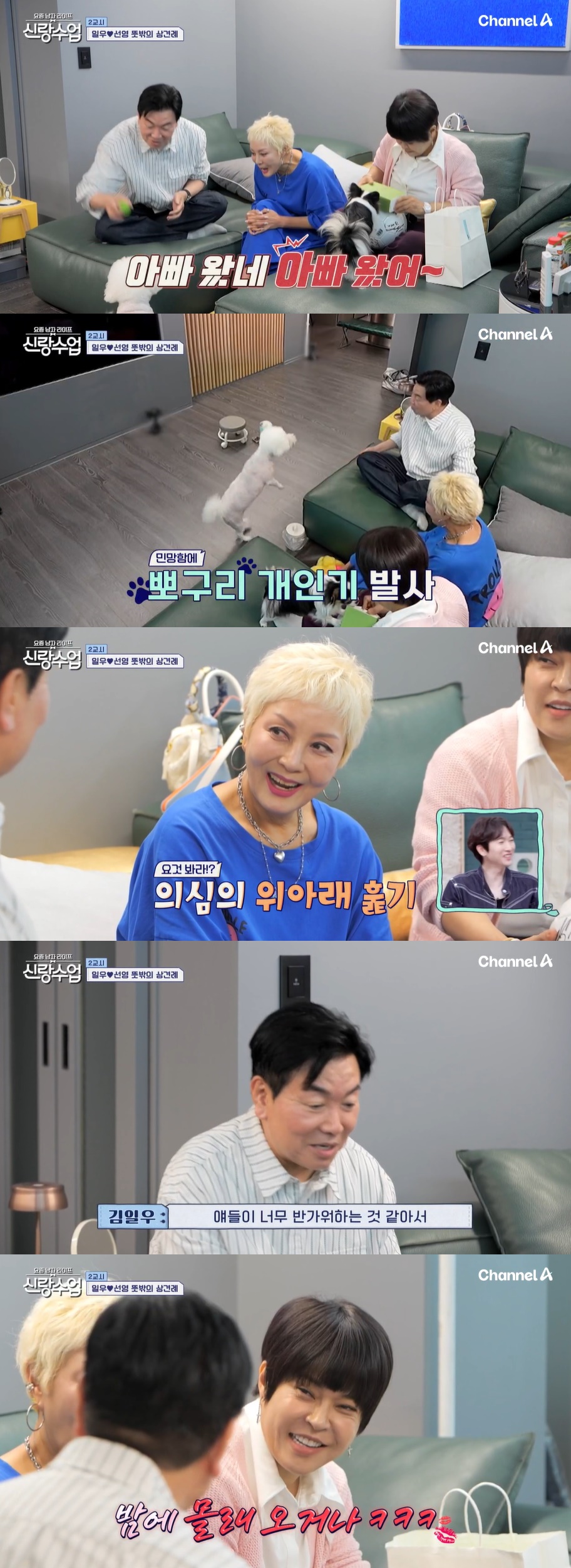 이어 박선영의 반려견이 김일우를 잘 따르는 모습을 보였는데, 김일우가 자신을 '엉아'라고 칭하자 홍진희는 "엉아 말고 아빠라고 해야지. 아빠 왔네~"라고 너스레를 떨었다.