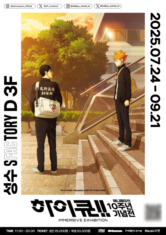 에스엠지홀딩스 주식회사는 7월 24일부터 9월 21일까지 서울 성수 에스팩토리 D동 3층 오뮤지엄에서 '하이큐!! 애니메이션 10주년 기념전 - IMMERSIVE EXHIBITION'을 개최한다고 밝혔다.