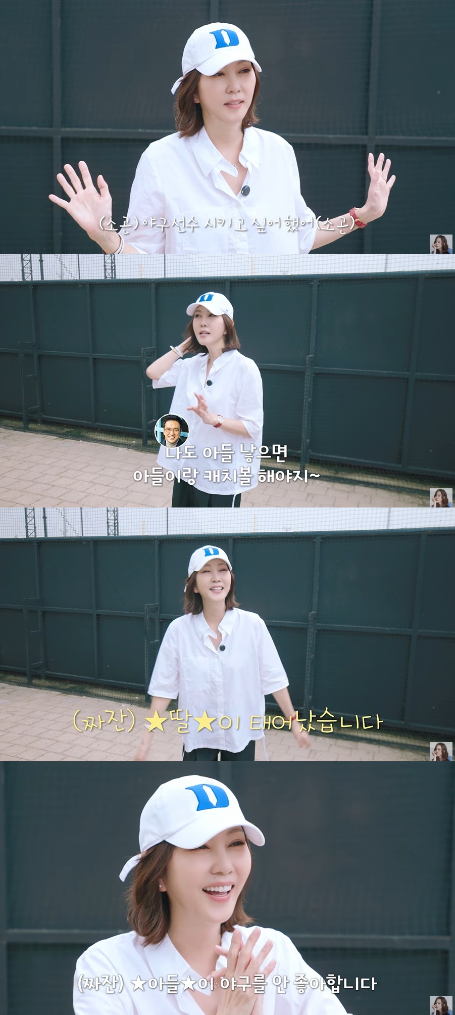 이어 김남주는 "남편은 원래 우리 아들을 야구선수 시키고 싶어 했다. (남편이) '나도 아들 낳으면 아들이랑 캐치볼 해야지' 했는데 딸이 태어났다"라고 말했다.