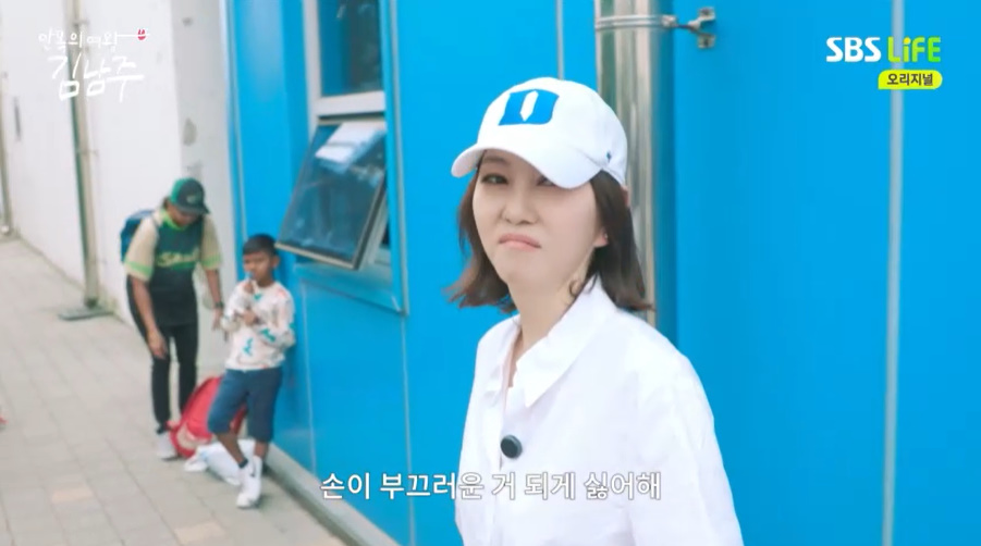 김남주는 당황해서 발도 헛디뎠는데, "아우. 창피해. 손이 부끄러운 걸 되게 싫어한다. 두고두고 잠 못 잔다. 이제"라며 민망해하는 모습을 보였다.