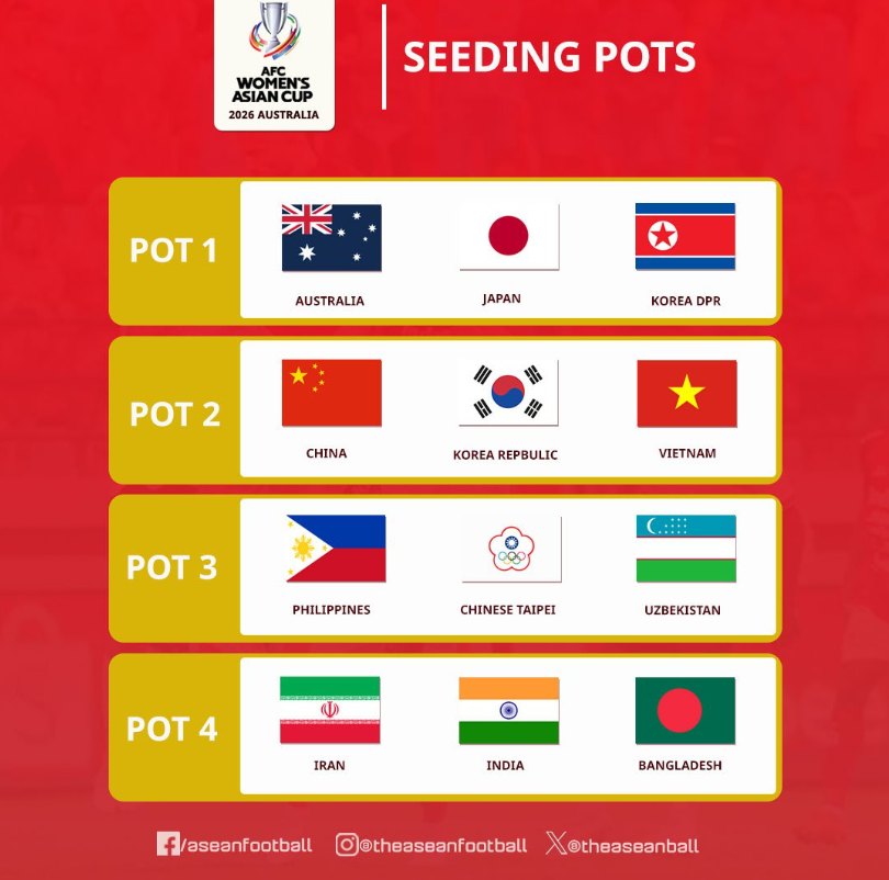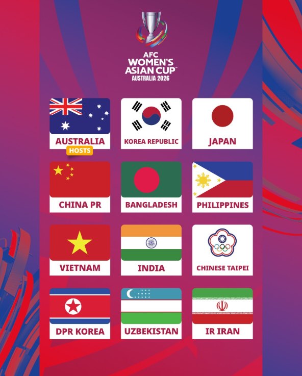 아시아축구연맹(AFC)는 지난 23일(한국시간) 연맹 공식 채널을 통해 "2026 AFC 여자 아시안컵 우승을 위해 활약할 12팀이 확정됐다"라고 발표했다.