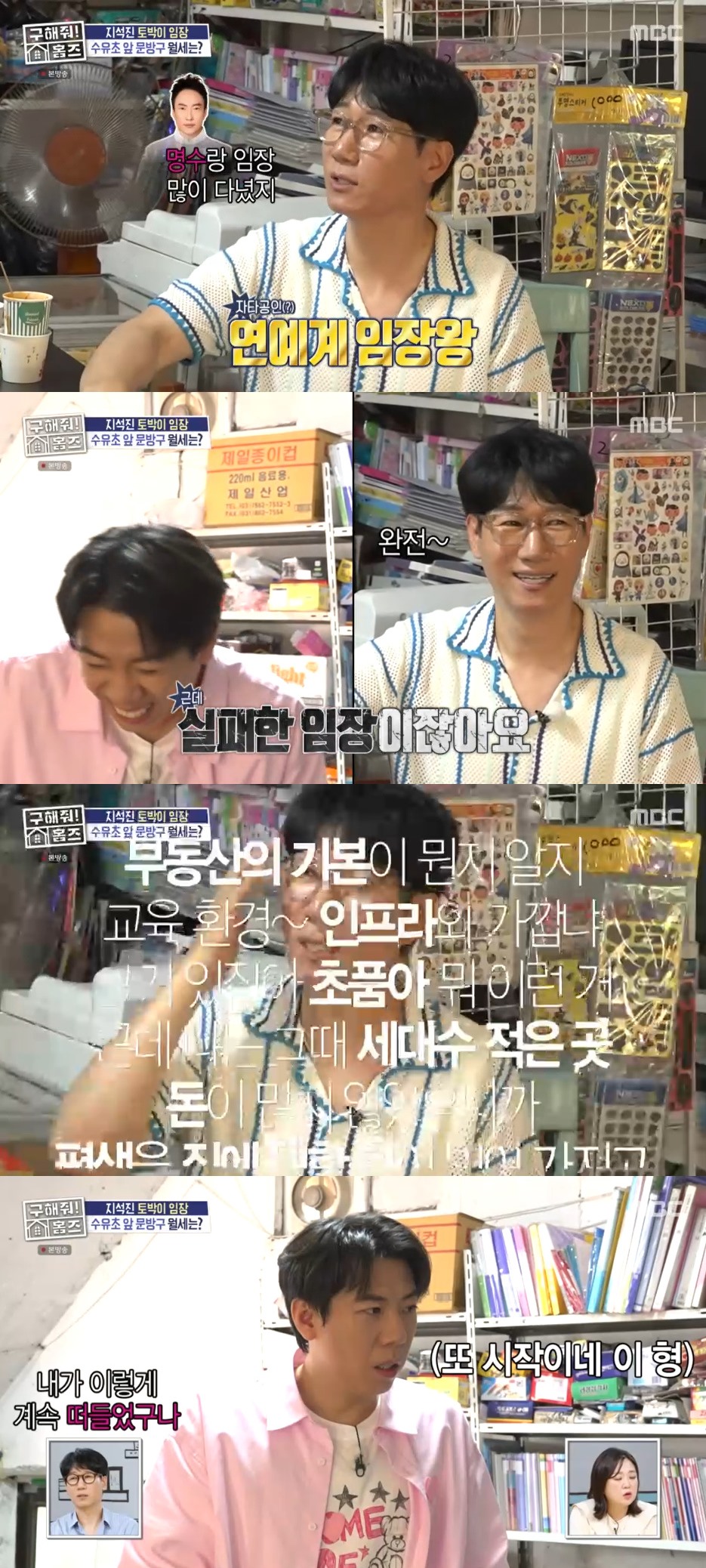 양세찬은 "내가 알기로는 연예인 중에서는 임장을 굉장히 많이 다니는 거로 알고 있다"라고 설명했고, 지석진은 "내가 명수랑 임장을 많이 다녔다"라고 덧붙였다.