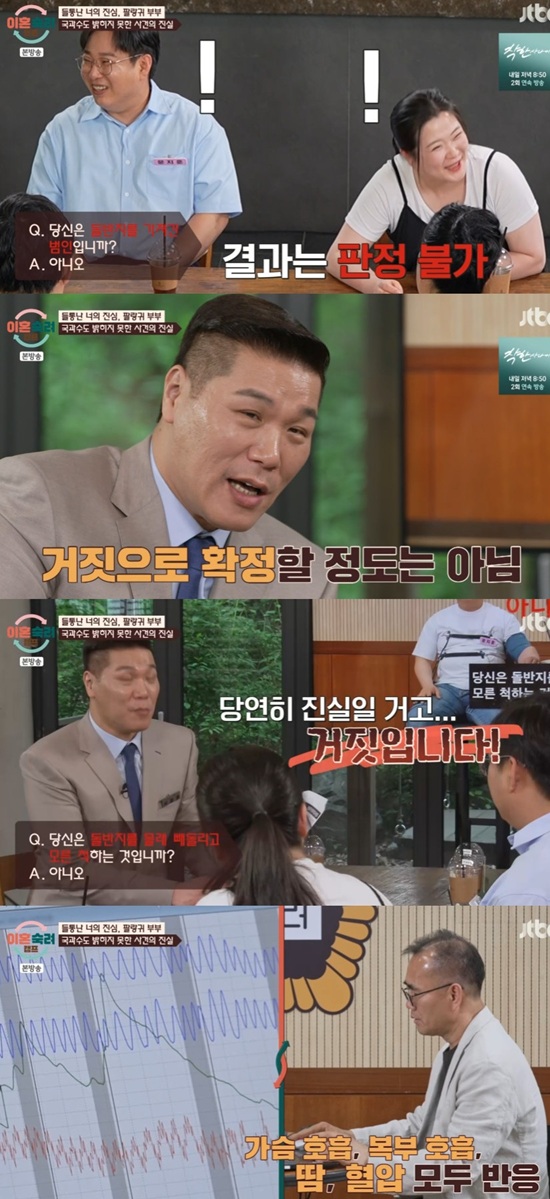 결국 이날 두 사람의 거짓말 탐지기 결과가 나왔다. 아내는 자신이 훔치지 않았다고 답했지만, 이례적으로 '판정 불가'가 나왔다.