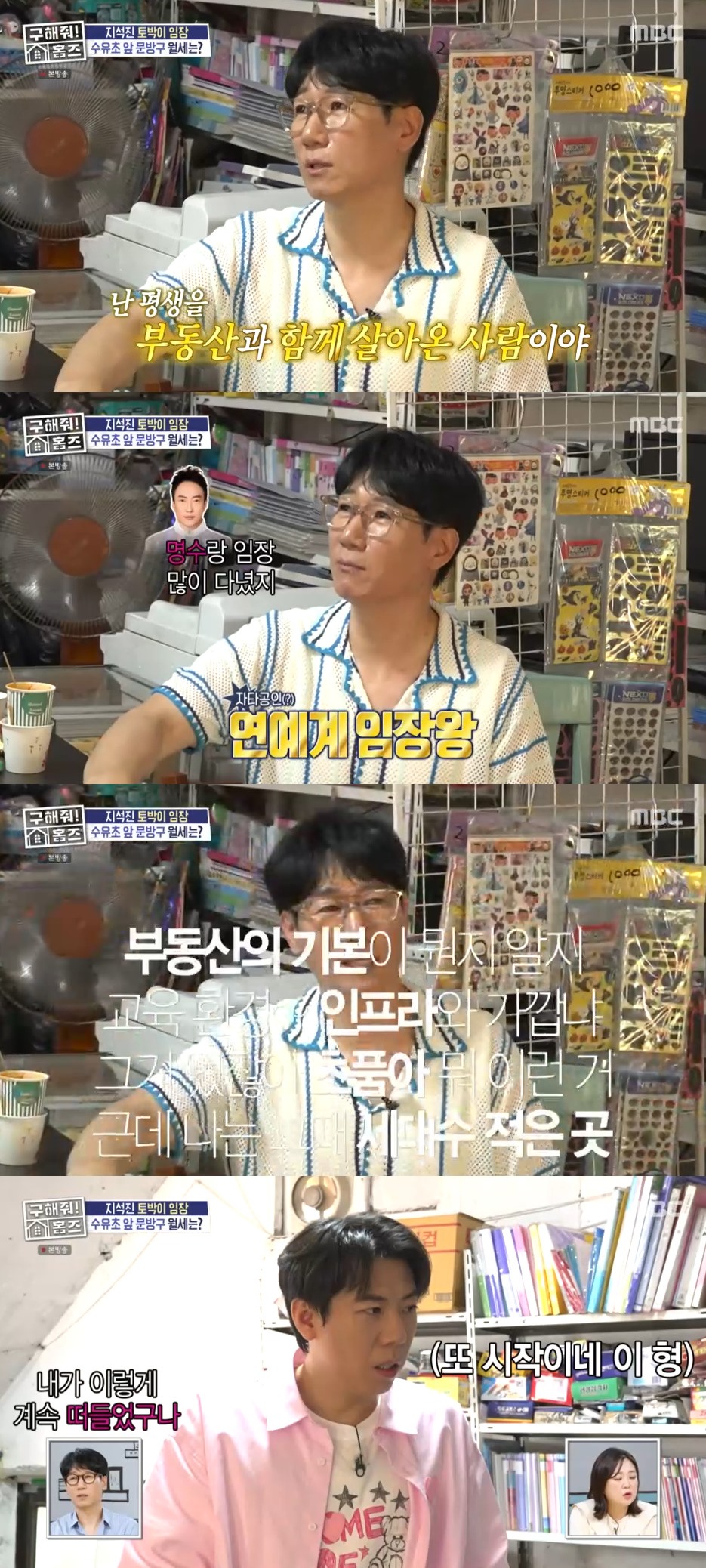 이어 지석진은 "난 평생을 부동산과 함께 살아온 사람이다. 난 지금도 취미가 부동산 보는 거다. 전국 아파트 시세는 다 안다"라고 자신했다.